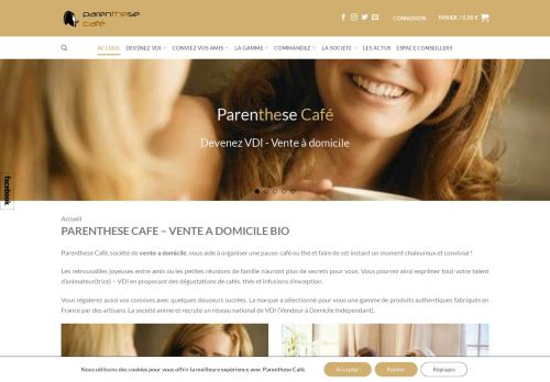 Vente à domicile de cafés, thés et infusions d'exception Pour un monde Bio, plus sain, plus humain Devenez VDI. Parenthese Café est une entreprise spécialisée dans la vente à domicile, en réunion, de cafés, thés et infusions d'exception. La marque anime un réseau national Vendeurs à Domicile Indépendants (VDI). voir moins