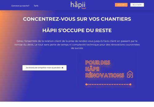 Pros du BTP, trouver des hapii clients n'a jamais été aussi simple avec : notre agence marketing, nos formations commerciales, l'assistant commercial Hâpii. Variez vos canaux d'acquisition pour ne plus dépendre voir plus