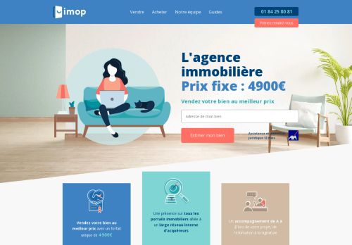 Vendez votre bien au meilleur prix ! Imop est une agence immobilière en ligne qui utilise le meilleur du digital pour transformer l'expérience de la vente immobilière aux particuliers. En s'appuyant sur la technologie et l’expertise de ses conseillers, Imop vous offre un accompagnement de A à Z sur l’ensemble des étapes de la vente avec un tarif fixe et réduit de 4900€. Nos conseillers sont des experts de votre quartier qui gèrent toutes les phases de votre projet, de l’estimation à domicile jusqu’à la signature de l’acte authentique. Nous vous assistons sur tous les aspects administratifs et juridiques y compris après la vente grâce à notre partenaire AXA. Les biens haut de gamme bénéficient de l’offre Prestige avec un accompagnement encore plus complet et l’accès a une clientèle internationale. voir moins